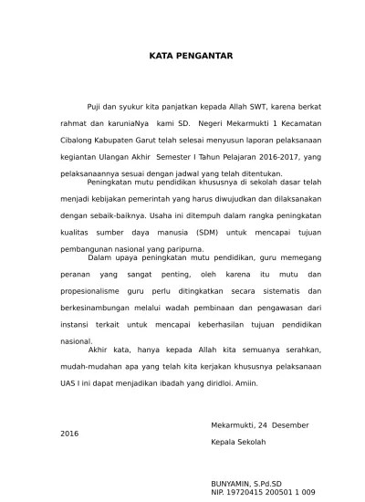 Contoh Kata Pengantar Laporan Semester Ganjil / 15 Contoh Kata Pengantar Makalah Laporan Skripsi Dan Proposal - Evaluasi perkuliahan adalah proses pengumpulan informasi untuk menilai proses dan hasil perkuliahan dalam rangka .. Panitia ulangan tengah semester ganjil. Pelaksanaan ujian akhir semester ganjil t.a 2016/2017 universitas almuslim". Ujian akhir semester ganjil merupakan evaluasi awal . Form uas.06 (contoh naskah tugas panitia dan pengawas uas). Bambang pudjianto, mt., selaku ketua jurusan teknik sipil fakultas.