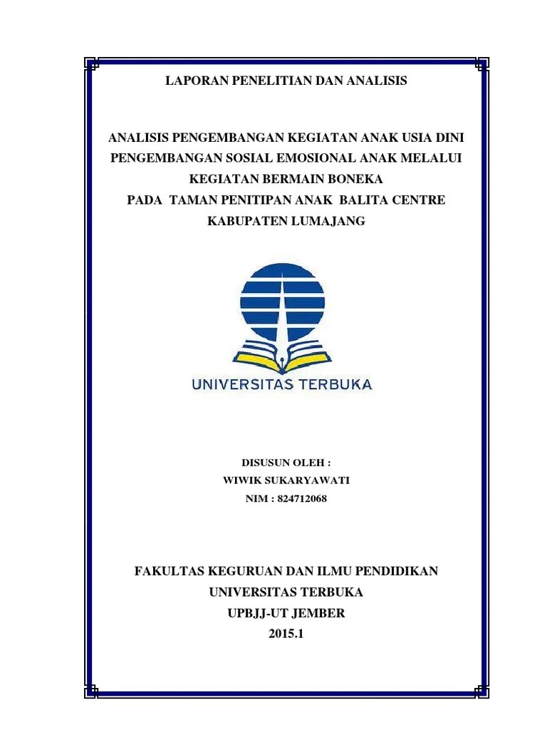 Contoh Laporan Analisis Kegiatan Bermain Boneka : Doc Laporan Perbaikan Pembelajaran Mata Kuliah Pgpaud 4501 Pemantapan Kemampuan Profesional Upaya Meningkatkan Kemampuan Fisik Motorik Halus Pada Kegiatan Mencetak Menggunakan Media Bervariasi Kelompok B Ditk Cik Puan Duri Disusun Oleh / Permainan adalah kegiatan menyenangkan yang dilaksanakan untuk.